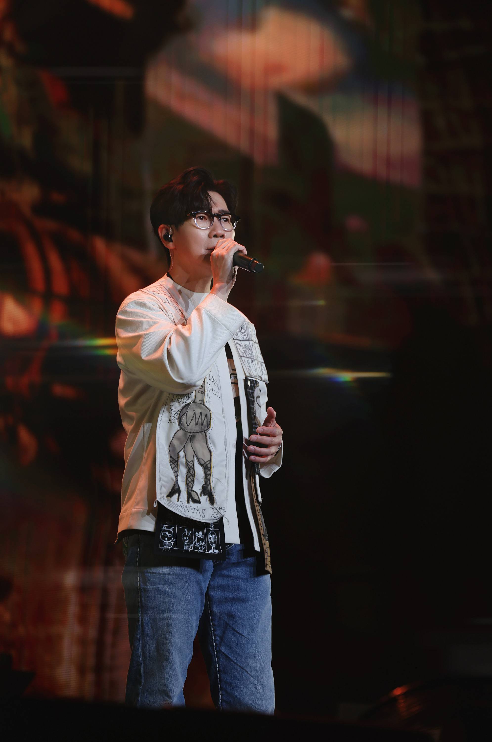 演出进行到经典歌曲《哄我入睡》时,现场音响出现小延迟。品冠沉着应对,与团队默契配合,依然凭借歌声顺利完成表演。追求完美的品冠并未满足于此,在安可环节返场重新演绎该曲,观众纷纷挥动荧光棒应援,如星河般照亮场馆,见证品冠对音乐如一的初心。