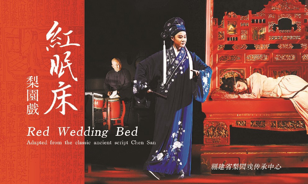 《红眠床》的基础,是梨园戏小梨园流派经典古本《陈三》。梨园戏按传统体例,都以男主人公命名,故这本戏原名《陈三》,民间则约定俗成称“陈三五娘”,是梨园戏久演不衰的代表剧目。目前存世的剧本包括明嘉靖丙寅(1566年)《荔镜记》、清顺治辛卯(1651年)《荔枝记》、光绪甲申(1884年)《荔枝记》,最早的1566年剧本刊印本,比汤显祖1598年完成《牡丹亭》创作还要早三十多年呢。