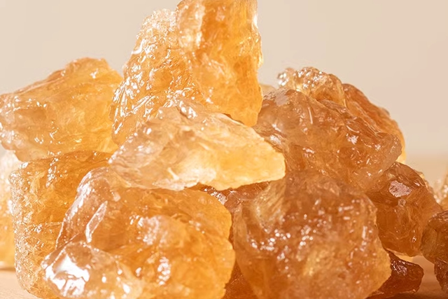 优质的老冰糖通常呈现淡黄色,而不是过于透明或纯白色,淡黄色的冰糖更可能保留了甘蔗的天然成分,质量通常更好,过于透明的冰糖可能经过多道加工或添加了其他物质,可能影响其天然品质。