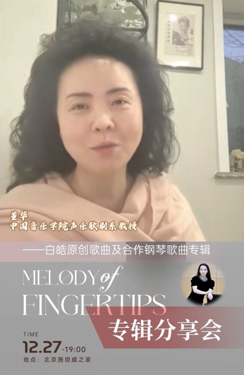 12月27日19时,合作钢琴家白皓将携原创专辑《指尖的旋律》在北京施坦威之家举办专辑分享会,现场呈现其原创歌曲及合作钢琴歌曲作品,多位特邀艺术家将同台助阵。