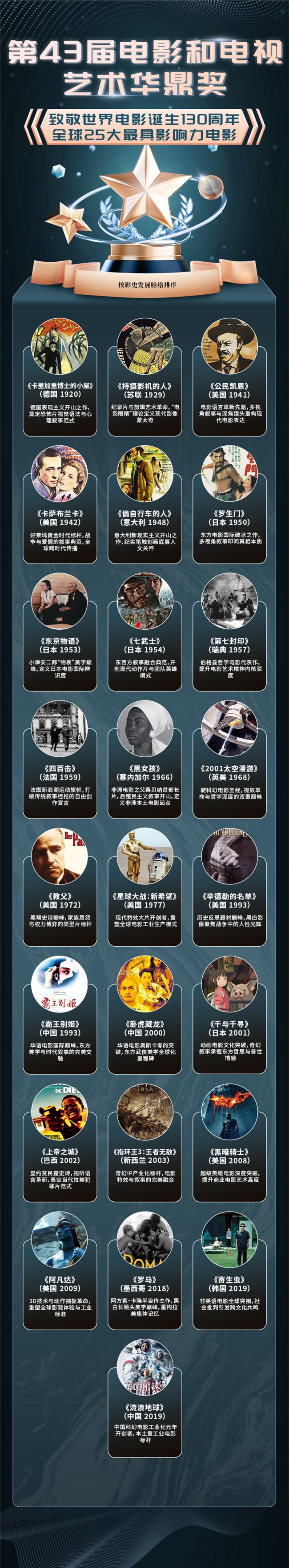 光影百年铸丰碑!第43届华鼎奖揭晓全球25大影响力电影 致敬世界电影130周年(光影耀百年)