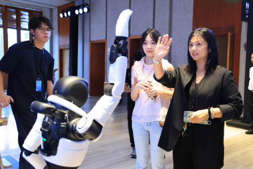 灵犀X2则化身“社交达人”,现场秀舞、打太极,还不时“小嘴抹蜜”送上暖心祝福“祝你的大片反转不断,票房破亿!”“愿你的喜剧片笑翻全场,口碑爆棚!”,甚至还俏皮地说“那我帮你养票房!”。在人群熙攘的展厅内,两款机器人跟着音乐节拍律动,陪伴来宾度过活动间歇的轻松时光。