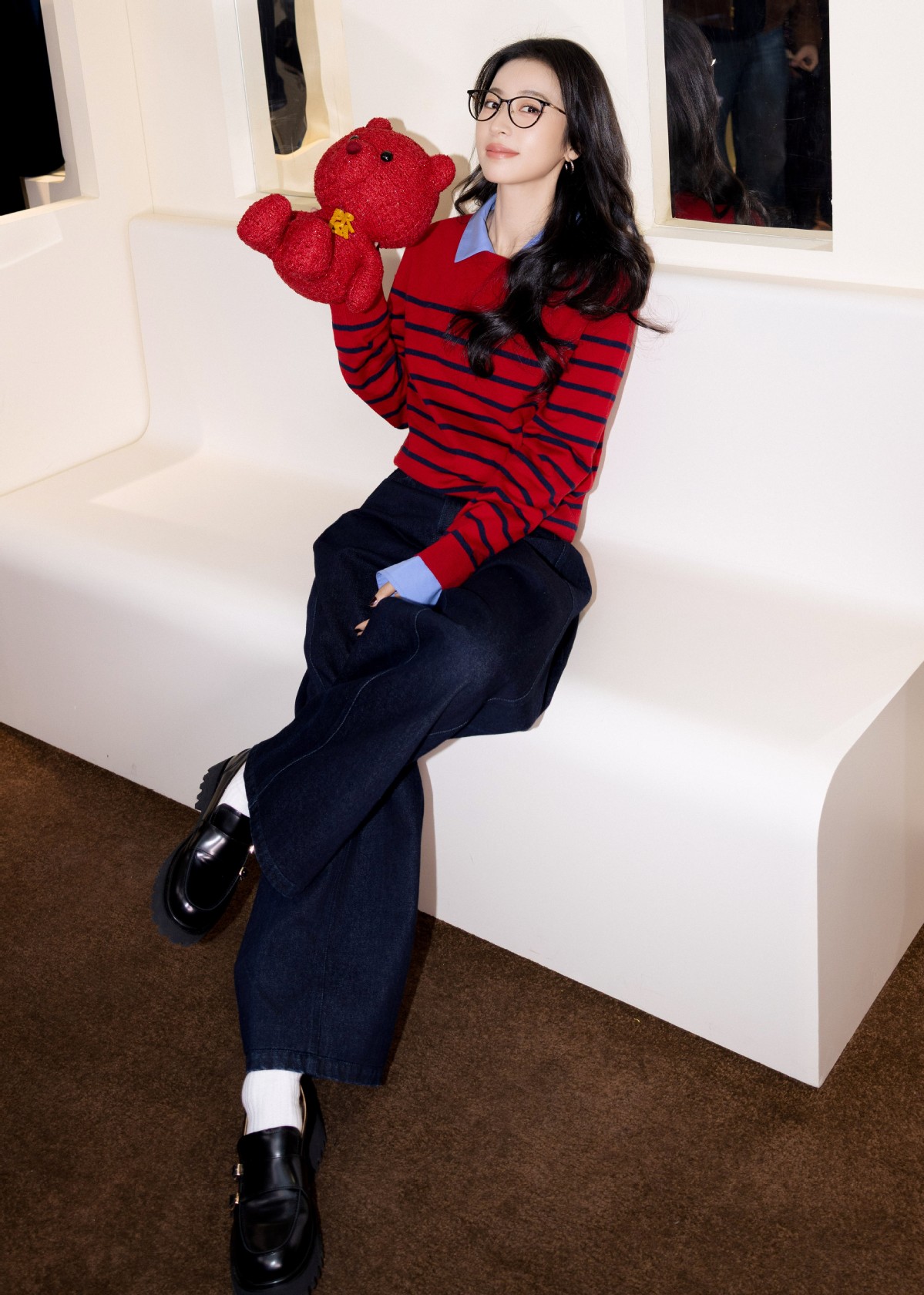 快闪以「此刻诗篇」为主题,通过叙事化灵感,将复古主义、极简经典、趣味时尚与摩登文化交织共生,共构出兼容并蓄的多元场域。周雨彤身穿PSALTER诗篇2025冬日新品亮相现场,蓝色衬衫与红色条纹毛衫的巧妙叠搭,明媚点亮欢聚时刻,既书写摩登语境下的混搭美学,亦流露书卷气息中蕴藏的智性姿态,恰如其分地诠释了品牌的内核。