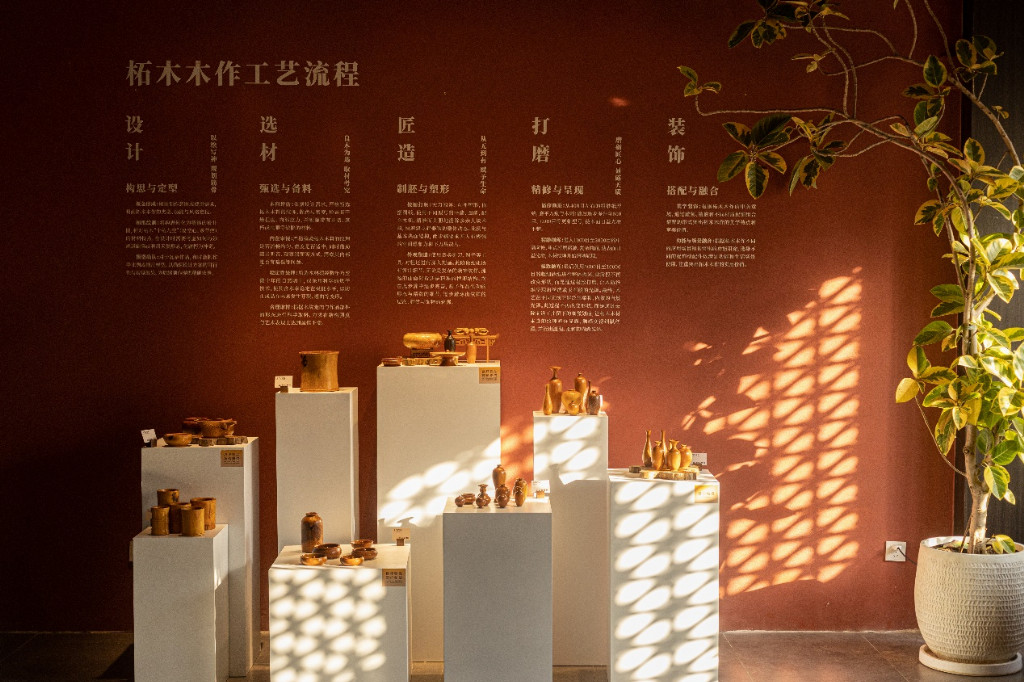 展览共分为六大板块,分别是:“初识:木石为开”、“传说:山海之东”、“良器:弓鸣藏锋”“钦选:皇家御用”、“福佑:宝刹拥毓”和“传承:巧物精极”,展现柘树在中华历史文明发展进程中的重要历史文化和应用故事,此外,展览还通过非遗技艺和AI技术制作了众多展示作品,生动还原了古代文献中关于柘树的记载或故事,让观众能够更直观的感受到柘树的历史底蕴和文化魅力。