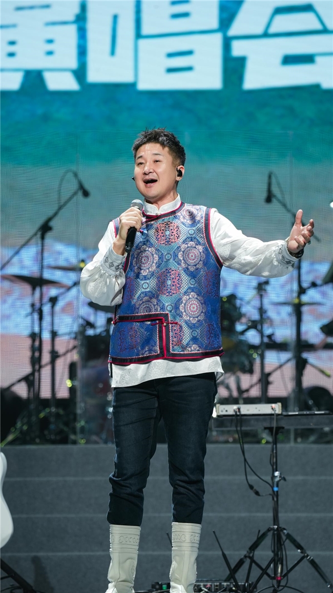 演唱会不仅是乌兰图雅的个人舞台,更是一场精心设计的多元文化盛宴。特邀嘉宾巴达荣贵的登场带来了新的惊喜,他演唱的《牧歌》和《赞歌》浑厚悠扬,歌声如苍鹰掠过苍穹,展现了蒙古族长调的独特魅力。