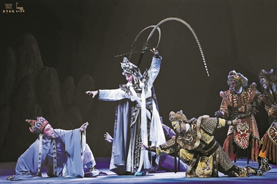 就笔者的理解,让孙悟空、唐僧、白骨精、金蟾怪四个角色戏份更加平衡的做法,是为了能够让每位演员都获得发挥的空间,这在戏曲表演传统中本来不错。而且几位都是极好的演员,尤其金蟾怪在本剧中贡献了一等一的表演。但是白骨精的形象、性格仍然不出传统,人物一登场,唱念上简要地自报家门、交代背景就可以了,若铺垫过多,唱词显得堆砌,无益于人物性格的塑造和展开。