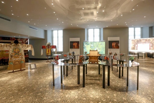 泸州老窖·国窖1573、柏联普洱茶、左右沙发、南洋迪克、凤阳家居、泰顺城市特色非遗项目、苏州丝绸博物馆、LAN珠宝等服饰、家具、陶瓷、酒器、茶、珠宝领域的中国品牌及机构联袂亮相,以非遗为脉络、以当代设计为语言,将非遗手工艺的千年底蕴与现代审美巧妙结合,向全球观众直观诠释了中国非遗“活态传承”的创新路径与无穷魅力。本次展览得到了泸州老窖·国窖1573、景迈山柏联茶庄园、Deep Green、中国家具协会、中国烹饪协会的大力支持,京东方作为首席显示技术合作伙伴为展览提供独家技术支持,联想集团提供展品介绍智能设备。