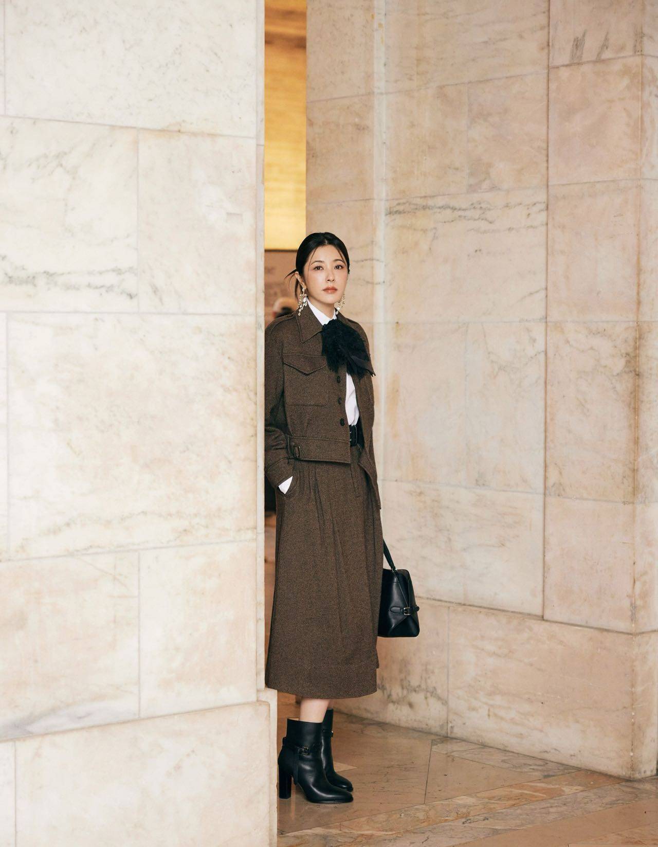 昨日曾黎以简约利落的造型出现在纽约时装周Ralph Lauren 2026春季时装秀的现场。站在秀场灯光下,她身着干练的深棕色套装,气质优雅,姿态从容,直面镜头的眼神自信坦荡,将东方女性的刚柔并济与现代独立气质完美融合。