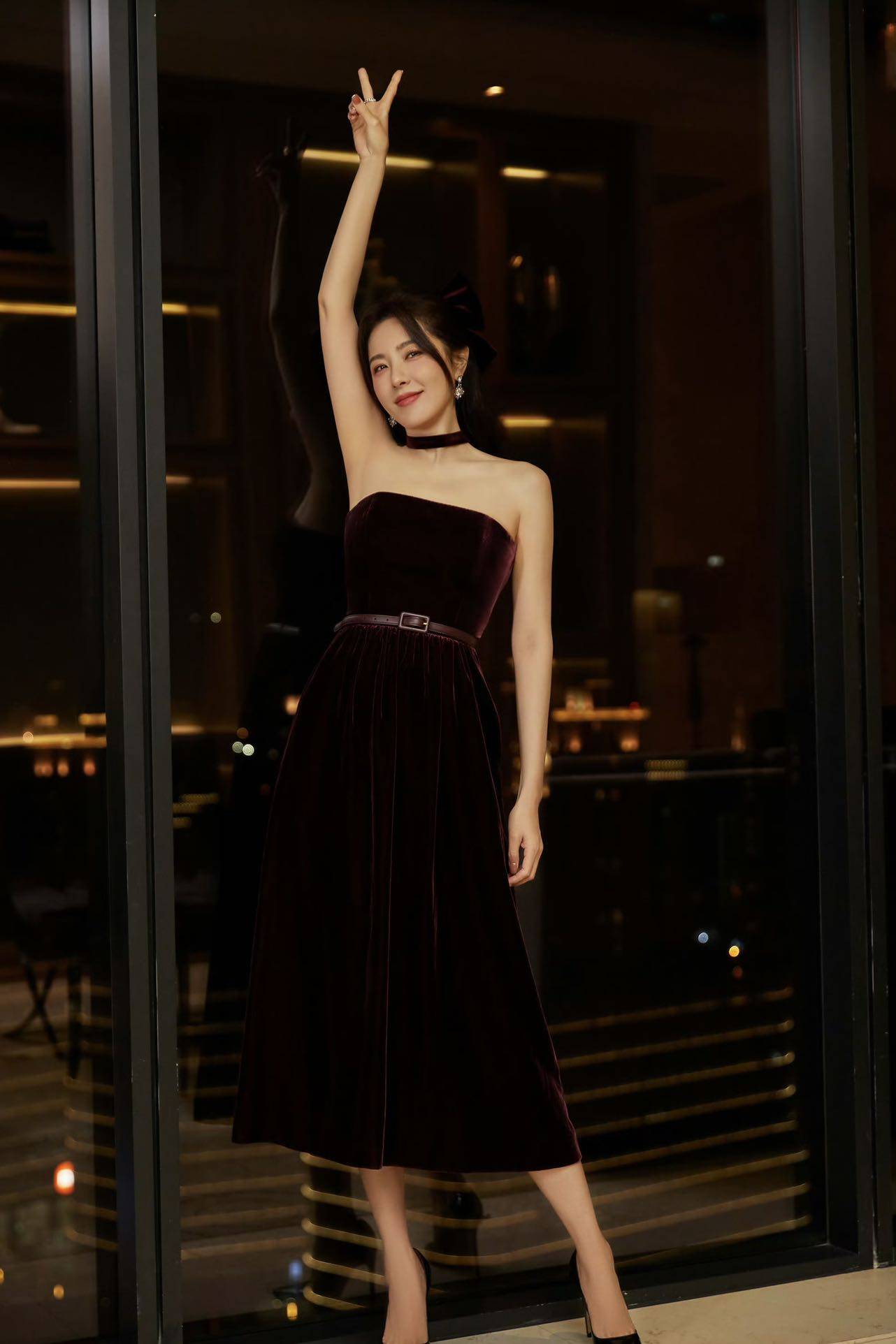而曾黎妆造的选择也成为了极简主义风格最好的诠释,她身穿简单优雅的修身礼服,配以黑色蕾丝领结作为点缀,没有夸张的装饰,也没有刻意性感的剪裁,却完美呈现端庄的气质,清淡自然的妆容也人也不会觉得用力过猛,笑意盈盈的眼角细微没有刻意遮盖,反而增添了几分成熟韵味。