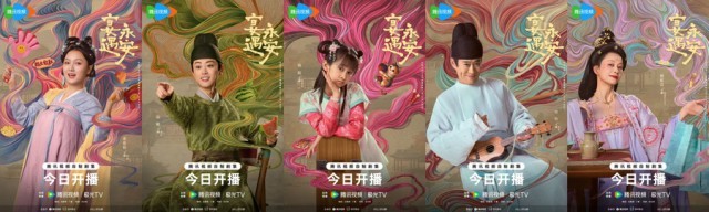 同步释出的单人角色海报以鲜明灵动的视觉语言勾勒出剧中人物的个性魅力。整组海报色调明亮鲜活梦幻,背景与服饰颜色相辅相成,色彩自人物衣间流淌而出,晕染成一片梦幻光晕,与角色服饰浑然一体,营造出轻盈欢快的喜剧氛围。十位主演手持极具代表性的趣味道具:王影璐身背创意版煎饼摊展现经营日常,李昀锐坐在棋盘旁气定神闲间透出古人的沉稳,昌隆敲击木鱼、冯嘉怡高捧奖杯、隋俊波轻摇折扇,董思怡挥舞拍手器、扈帷吃瓜看戏、韩陌身倚滑板,刘钧与倪虹洁则分别怀抱尤克里里与手提购物袋;每件道具皆特色巧妙呼应角色身份。海报画面将古风造型与潮流元素大胆碰撞,色彩对比强烈、构图活泼生动,进一步强化了剧集“古今交融”的轻喜剧风格,展现出古装爱情宅逗剧的内容张力与情感温度,令人对这场笑料与治愈交织的奇妙相遇充满期待。