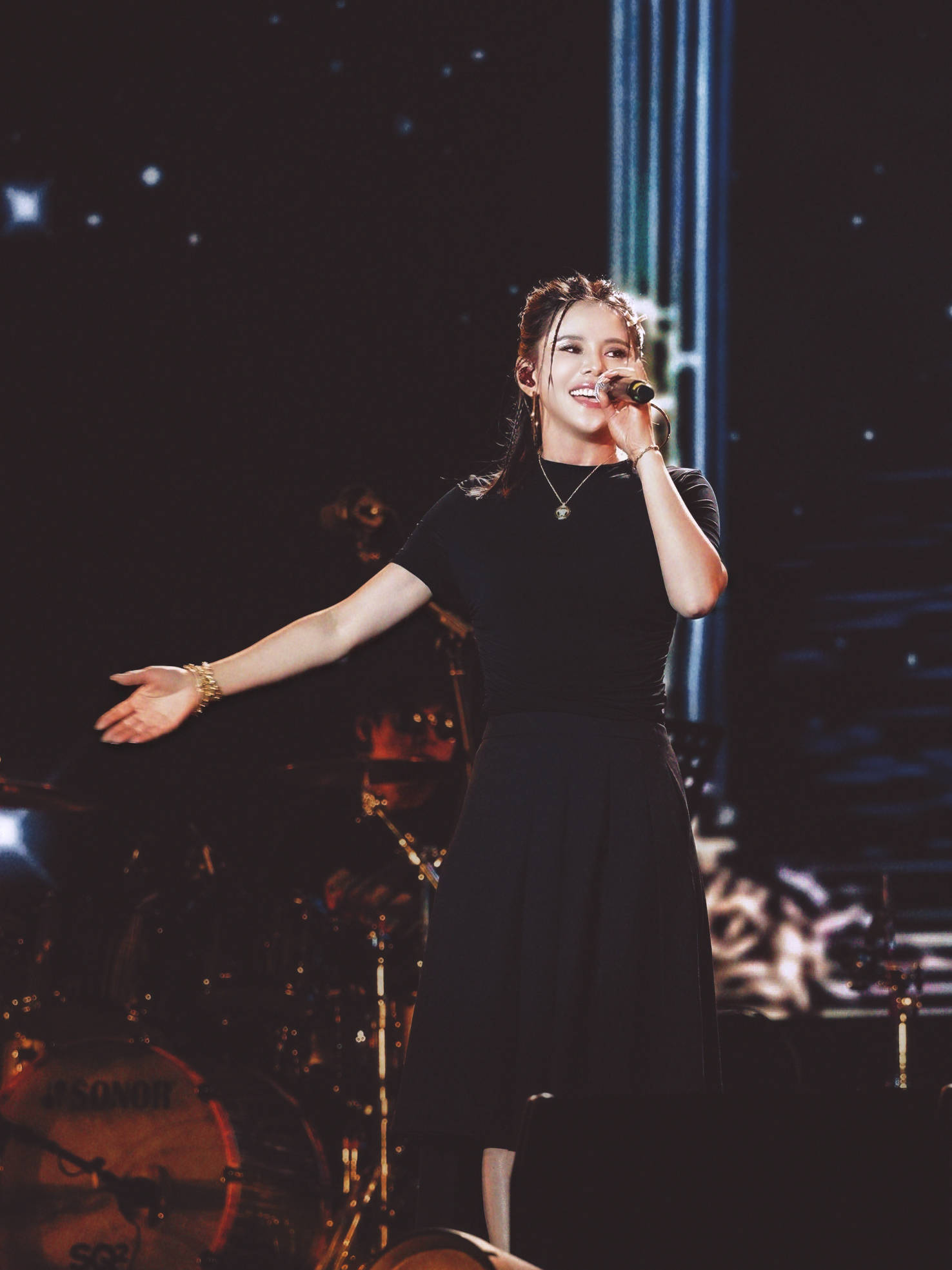 邵雨涵为观众带来了一套精心编排的串烧曲目,包括活力四射的《拉拉爱》、情感真挚的《来不及说爱你》以及充满梦幻色彩的《快乐阿拉蕾》。当《拉拉爱》强劲的电子节拍响起,邵雨涵以其富有穿透力的嗓音和极具感染力的舞台表现,成功引领全场观众进入一个充满能量与欢快的音乐世界。从《来不及说爱你》的深情倾诉,到《快乐阿拉蕾》的无忧律动,她精准地驾驭了不同歌曲的情感色彩,展现了其作为“电音公主”不仅限于劲歌热舞的多元音乐表现力。