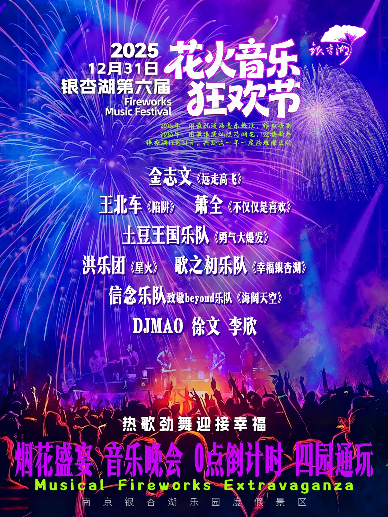 南京银杏湖第六届花火音乐狂欢节璀璨启幕 跨年盛宴点亮城市夜空(南京市银杏湖主题乐园)