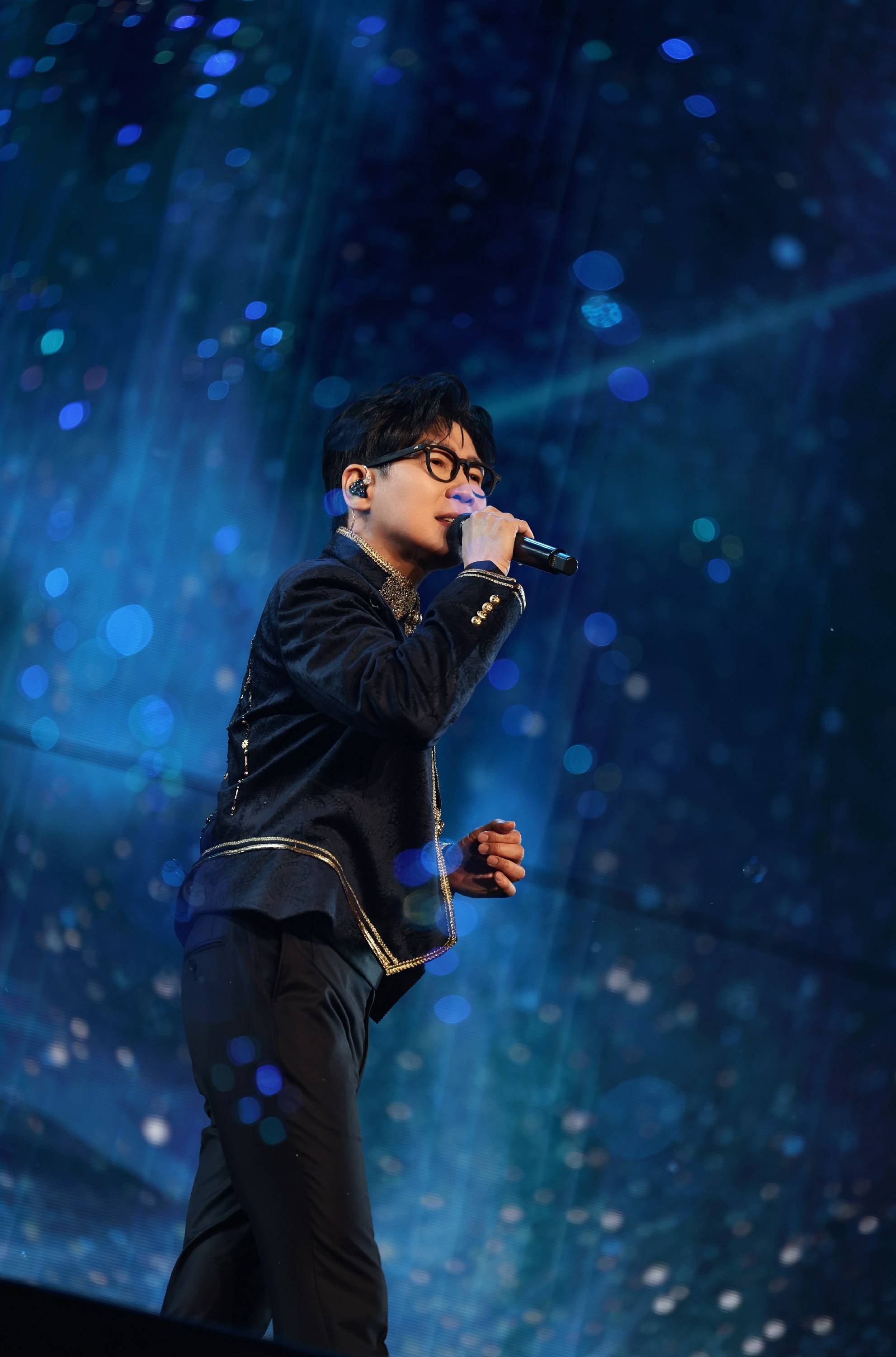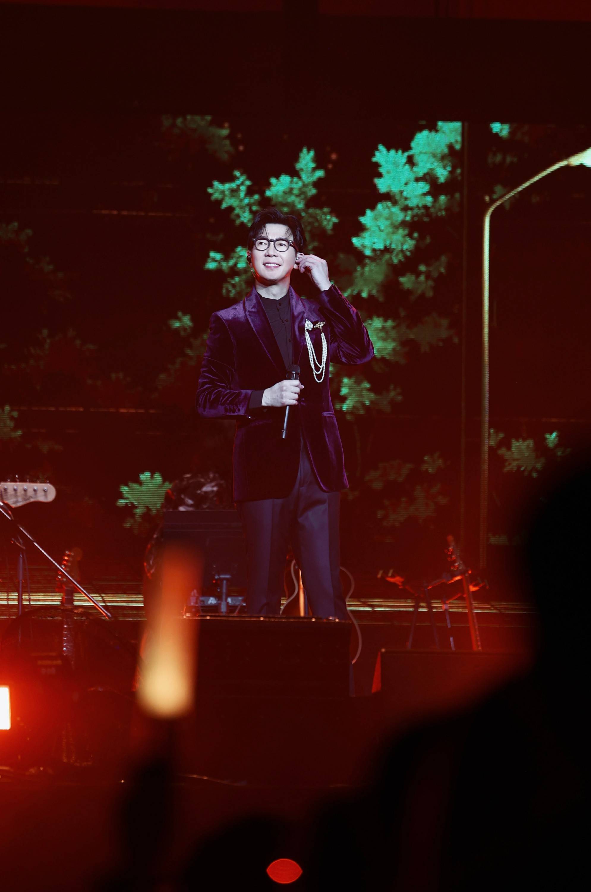 演出进行到经典歌曲《哄我入睡》时,现场音响出现小延迟。品冠沉着应对,与团队默契配合,依然凭借歌声顺利完成表演。追求完美的品冠并未满足于此,在安可环节返场重新演绎该曲,观众纷纷挥动荧光棒应援,如星河般照亮场馆,见证品冠对音乐如一的初心。