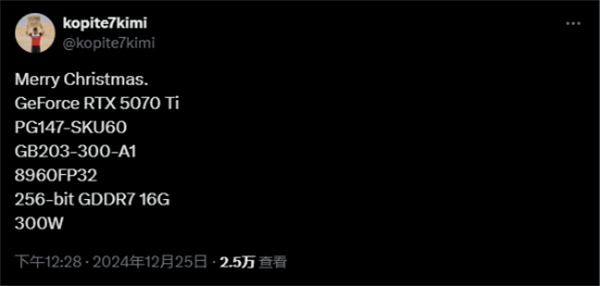 近日,知名爆料人士 @kopite7kimi 爆料出 RTX 5070 及 5070 Ti 显卡的规格,RTX 5070(PCB PG146/147-SKU70)搭载 GB205-300-A1 GPU,配 12G GDDR7 显存,显存位宽 192-bit,拥有 6144 个 CUDA 核心,功耗 250W。从规格来看,该卡应该是 1080p 级别的产品。