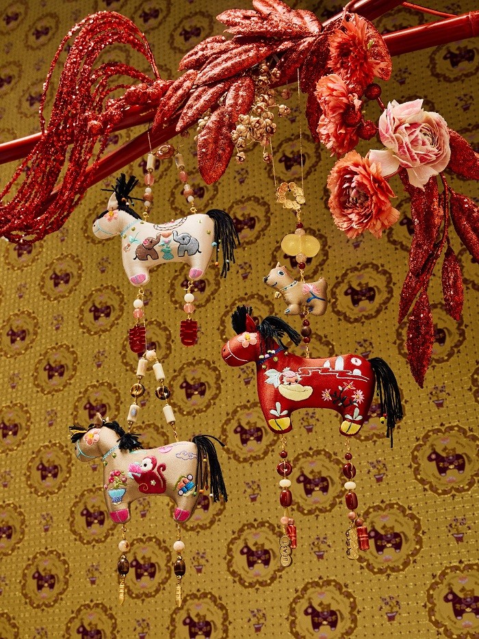 与此同时,系列同步上线「马上有柴」织标香囊,以传统马鞍轮廓为灵感,织标图案为小马背小柴犬,取“柴(财)”之谐趣,并配手工珠串,为年礼增添更轻巧的日常佩挂方式。