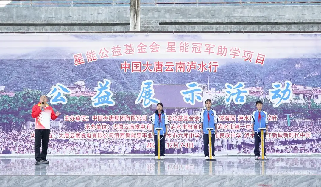 2025年12月7-8日,“星能冠军助学项目——中国大唐云南泸水行”公益展示活动正式拉开帷幕。由中国大唐集团有限公司、北京星能公益基金会、云南省体育局、泸水市人民政府联合主办,大唐云南发电有限公司、泸水市教育体育局、泸水市第一中学精心承办,大唐云南发电有限公司滇西能源事业部、泸水市六库中学、泸水市民族中学、泸水市怒江新城新时代中学协同协办。活动受到当地政府高度重视,参与人数众多。