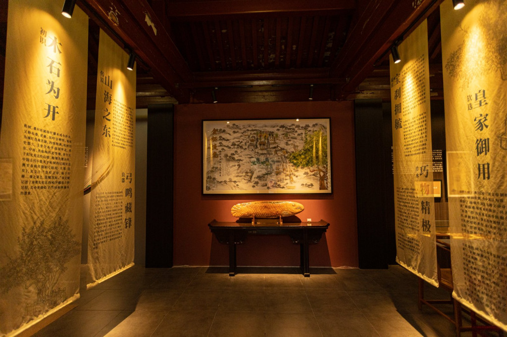 展览共分为六大板块,分别是:“初识:木石为开”、“传说:山海之东”、“良器:弓鸣藏锋”“钦选:皇家御用”、“福佑:宝刹拥毓”和“传承:巧物精极”,展现柘树在中华历史文明发展进程中的重要历史文化和应用故事,此外,展览还通过非遗技艺和AI技术制作了众多展示作品,生动还原了古代文献中关于柘树的记载或故事,让观众能够更直观的感受到柘树的历史底蕴和文化魅力。