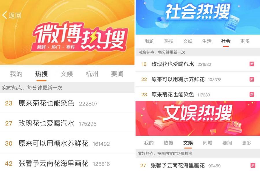 《花开中国》云南红河篇自播出以来,凭借持续高热的话题效应成功破圈,不仅在收视上表现卓越——最高收视率达0.76%,平均收视0.52%,更在全网掀起一场围绕“花文化”的广泛共鸣与热议。累计56个热搜热榜、4个微博主榜热搜,以及多个趣味话题如#原来菊花也能染色#、#玫瑰花也爱喝汽水#、#张馨予云南花海里画花#等纷纷跻身公众视野;#张馨予水哥说云南是向往之地#更覆盖云南全省8个地级市及8个自治州同城热搜,深度触动地域情感。
