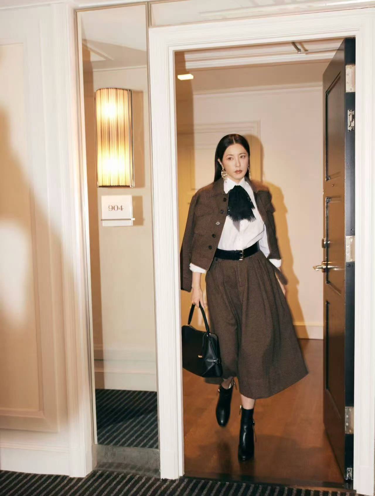 昨日曾黎以简约利落的造型出现在纽约时装周Ralph Lauren 2026春季时装秀的现场。站在秀场灯光下,她身着干练的深棕色套装,气质优雅,姿态从容,直面镜头的眼神自信坦荡,将东方女性的刚柔并济与现代独立气质完美融合。