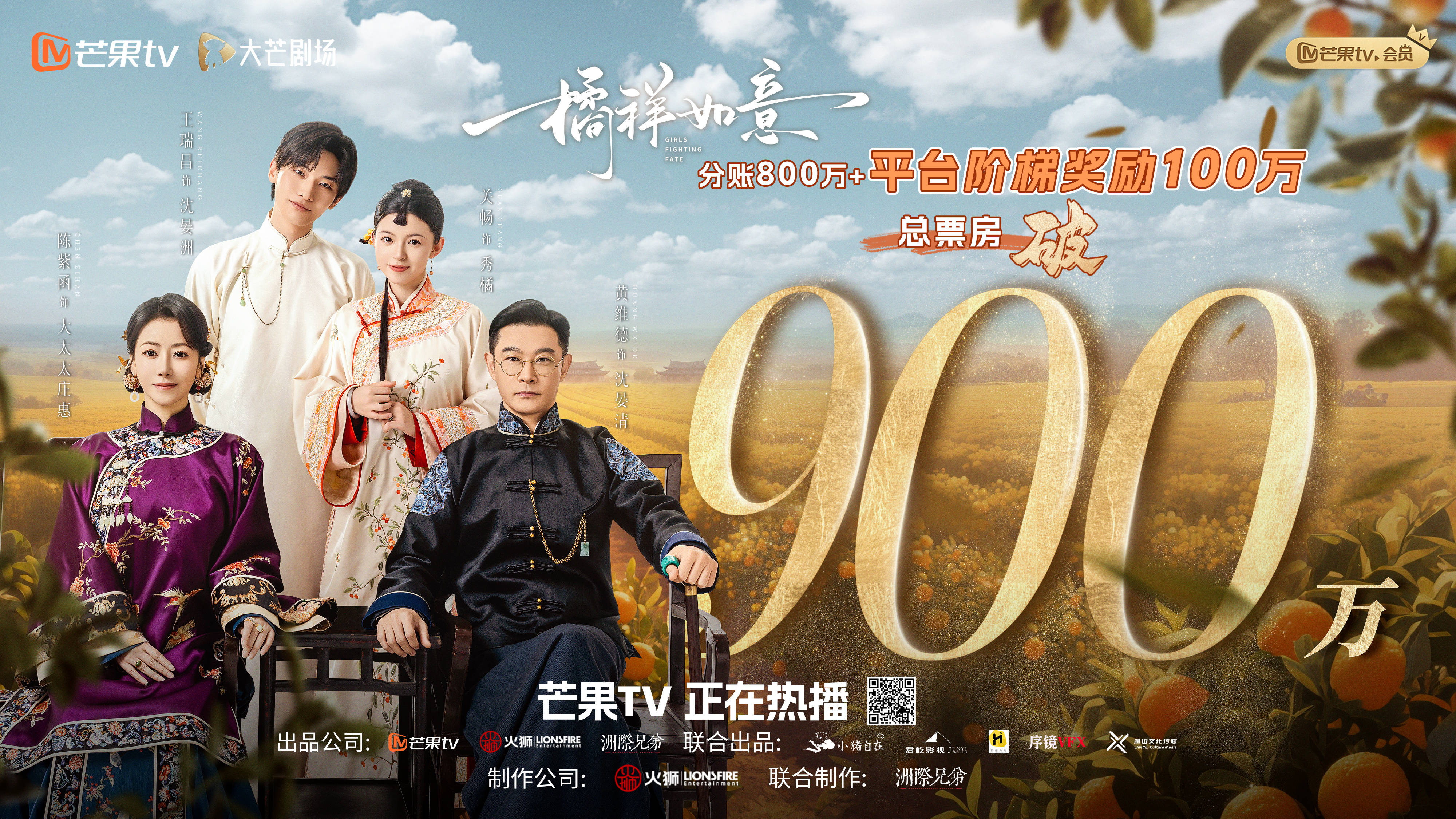 注重传统文化的传播,也是火狮王国发展的基点。2025年6月,由姜磊担任总出品人及总制片人制作的《橘祥如意》更是成为行业焦点。这部剧改编自经典文学著作《橘子红了》,在改编过程中,姜磊团队面临诸多挑战,但他们凭借着执着的匠心和创新的精神,成功打造出一部别具一格的民国女性成长剧。为了呈现出橘园最真实的生命力,剧组不惜斥资购入大量青橘、黄橘混合复种;在成本控制方面,剧组更是巧用横店灯会现成布景,将原本可能需要百万级投入的重头戏成本压缩至行业均值之下。在叙事上,严格遵循 “长剧短剧化” 的精准叙事法则,开篇便迅速推进剧情,避免拖沓铺垫,使得观众留存率大幅提升。《橘祥如意》在有限的制作成本下,成功撬动近千万的分账票房,在猫眼、云合等平台数据中与头部 A 级项目比肩,为行业提供了 “小而美” 的优秀制播案例。姜磊在采访中表示,希望赋予剧中女性角色当代意识,打破脸谱化设定,该剧最颠覆性的突破便是对原版悲剧内核的重构,将其改为女性互助爽剧,精准切中 Z 世代观众的喜好,这种创新精神赢得了观众和市场的双重认可。